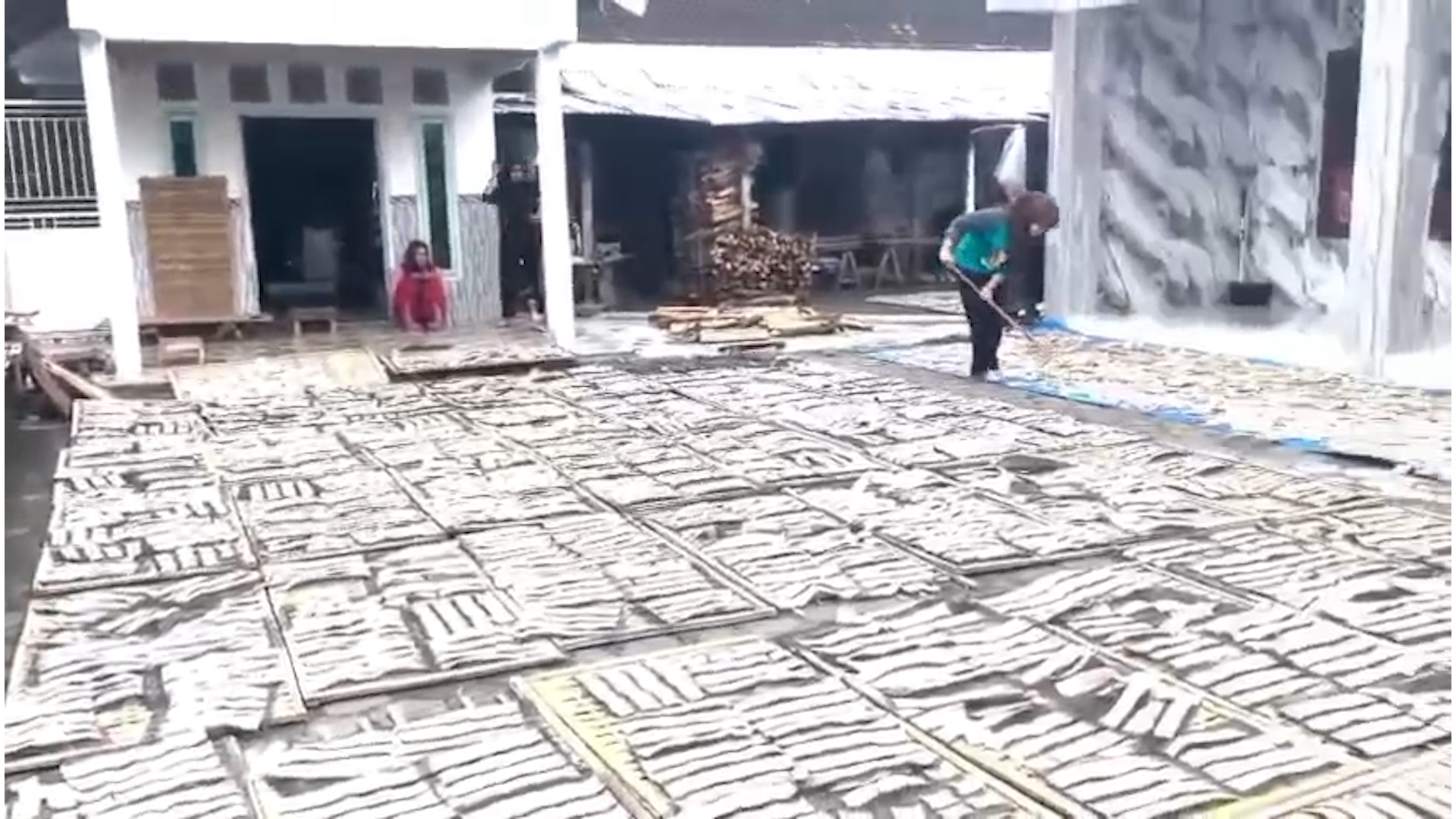 Karyawan produksi, Ica Alya Rahmawati, menyampaikan bahwa hujan yang terus-menerus membuat proses pengeringan tidak bisa berjalan normal.