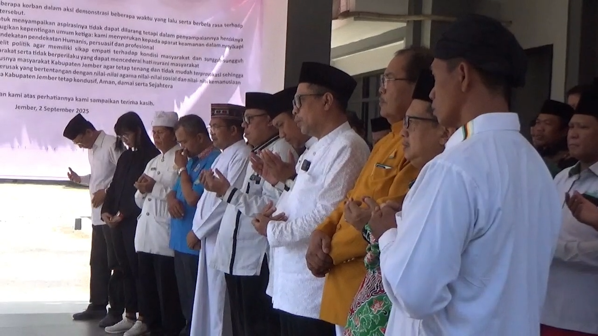 Ketua FKUB Jember, Abdul Muis Sonhaji, menegaskan bahwa doa lintas agama ini merupakan bentuk harapan bersama agar bangsa tetap aman.
