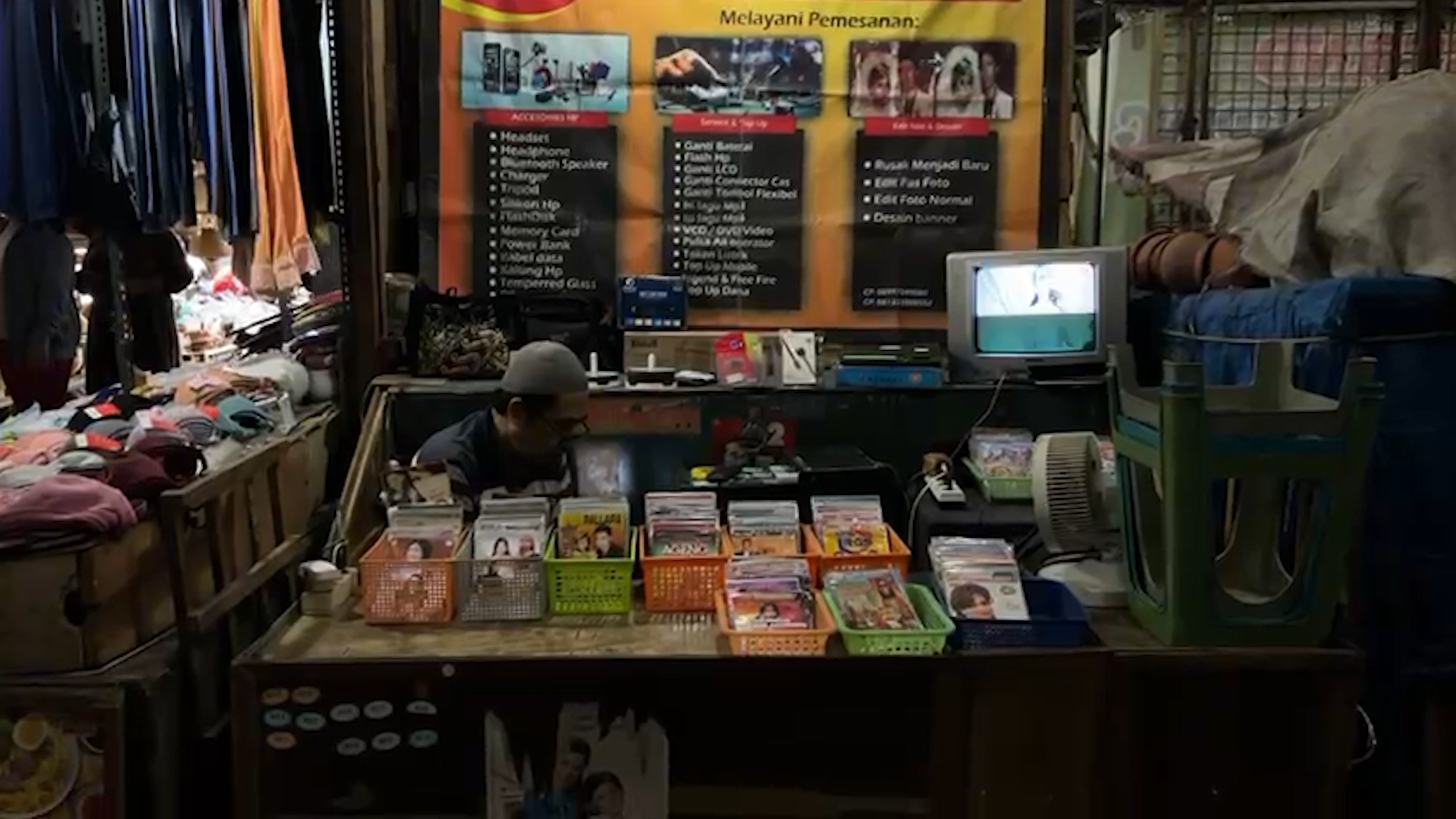 Di lapak milik Samsul Hidayat, terlihat rak-rak sederhana yang tersusun rapi berisi beragam koleksi kaset VCD dan DVD, baik baru maupun lawas. Koleksi itu meliputi lagu pop Indonesia, dangdut, rock, hingga album nostalgia yang hingga kini masih dicari sebagian kalangan.