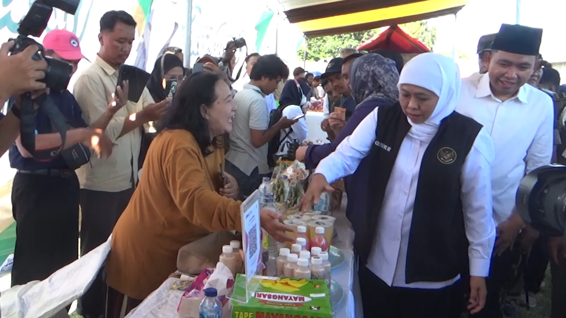 Gubernur Jawa Timur, Khofifah Indar Parawansa, hadir langsung meninjau jalannya pasar murah bersama Bupati Jember, Muhammad Fawait. Keduanya juga sempat memborong produk di beberapa lapak dan membagikannya kepada warga yang berbelanja.