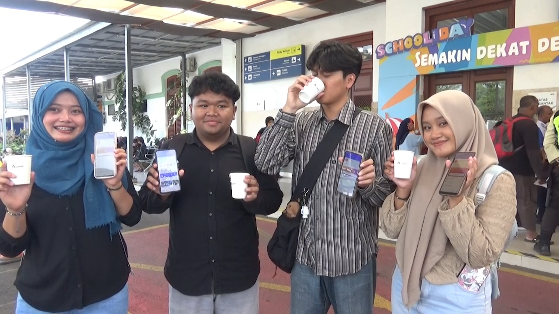“Seneng banget ya, nunggu kereta sambil ngopi gratis. Suasananya juga rame dan seru,” katanya.