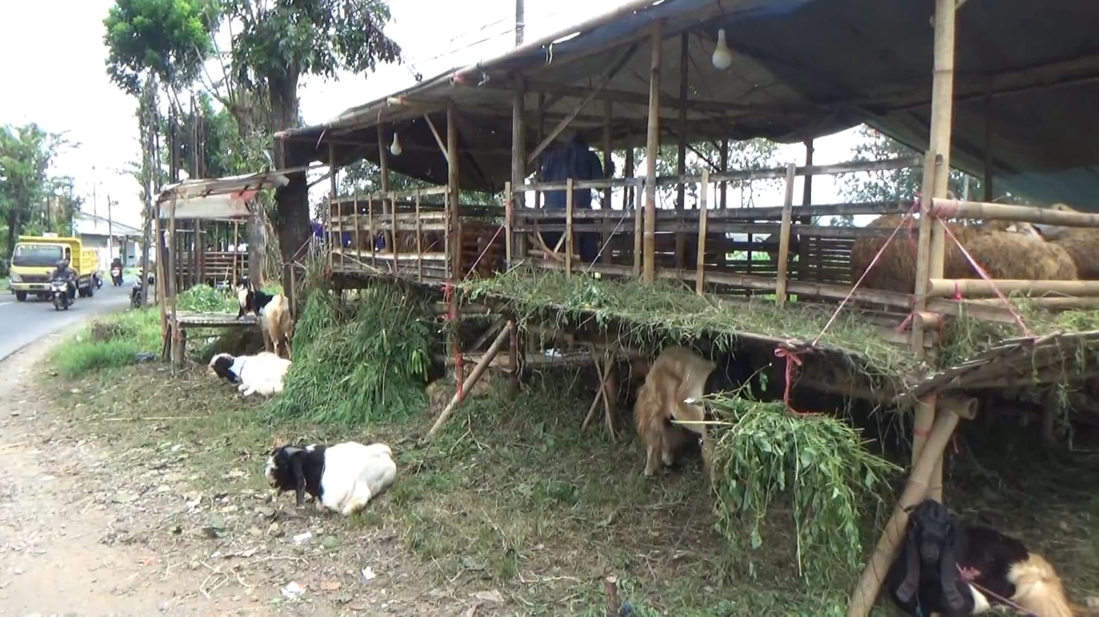 Para pedagang mendirikan kandang sementara sebagai etalase untuk menawarkan hewan ternak yang akan dijadikan hewan kurban. Namun, meski hari raya semakin dekat, mereka mengaku belum melihat tanda-tanda keramaian dari pembeli.