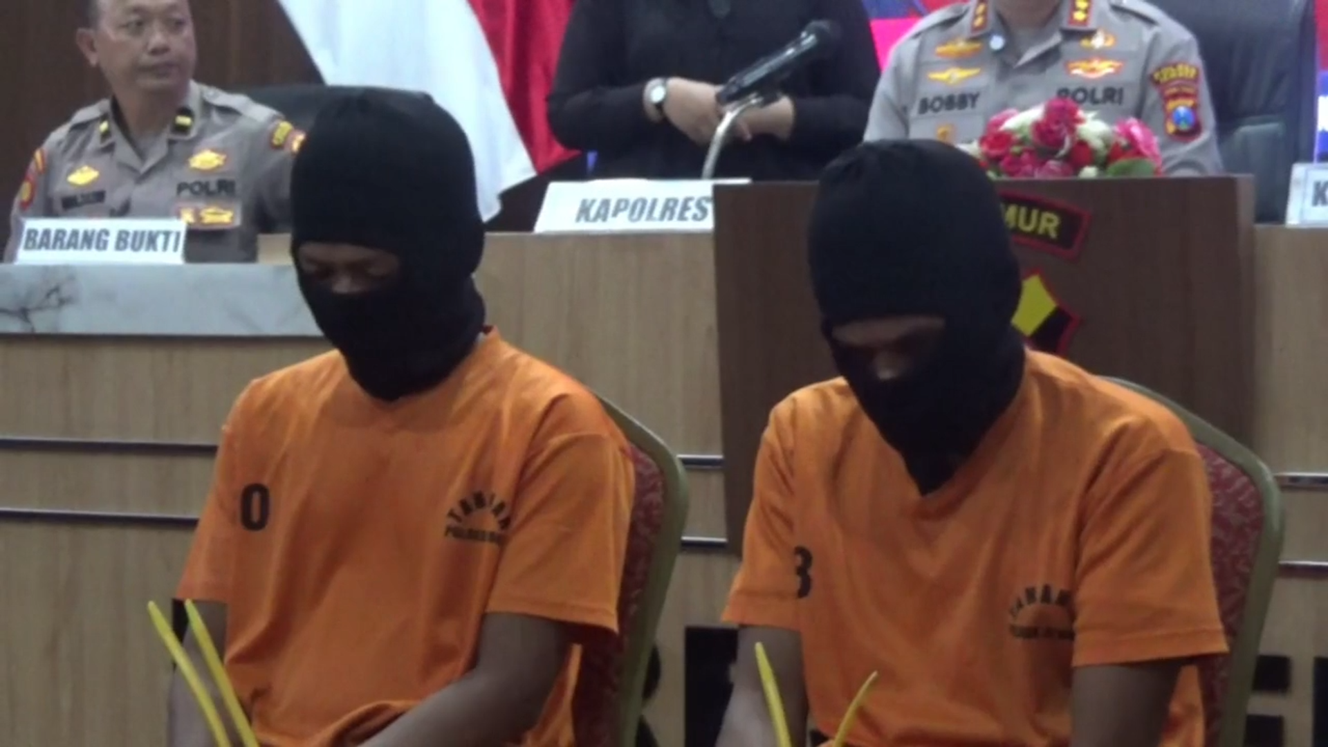 “Adapun motif dari dua tersangka ini, mereka sempat pergi bersama minum-minum keras sehingga mabuk berat. Korban saat itu tidak dapat mengontrol diri sehingga marah-marah dan berteriak kepada dua temannya ini. Kedua tersangka merasa emosi juga terhadap korban dan melakukan pembunuhan. Dari para tersangka ini kami berhasil mengamankan barang bukti antara lain satu jaket jumper warna hitam milik korban, kaos abu-abu, sebuah topi abu-abu, satu unit sepeda motor Honda Vario putih tahun 2017, dan juga jaket jumper bertuliskan Hasbiten di bagian depan,” terang Kapolres Jember, Kamis (28/8/2025).