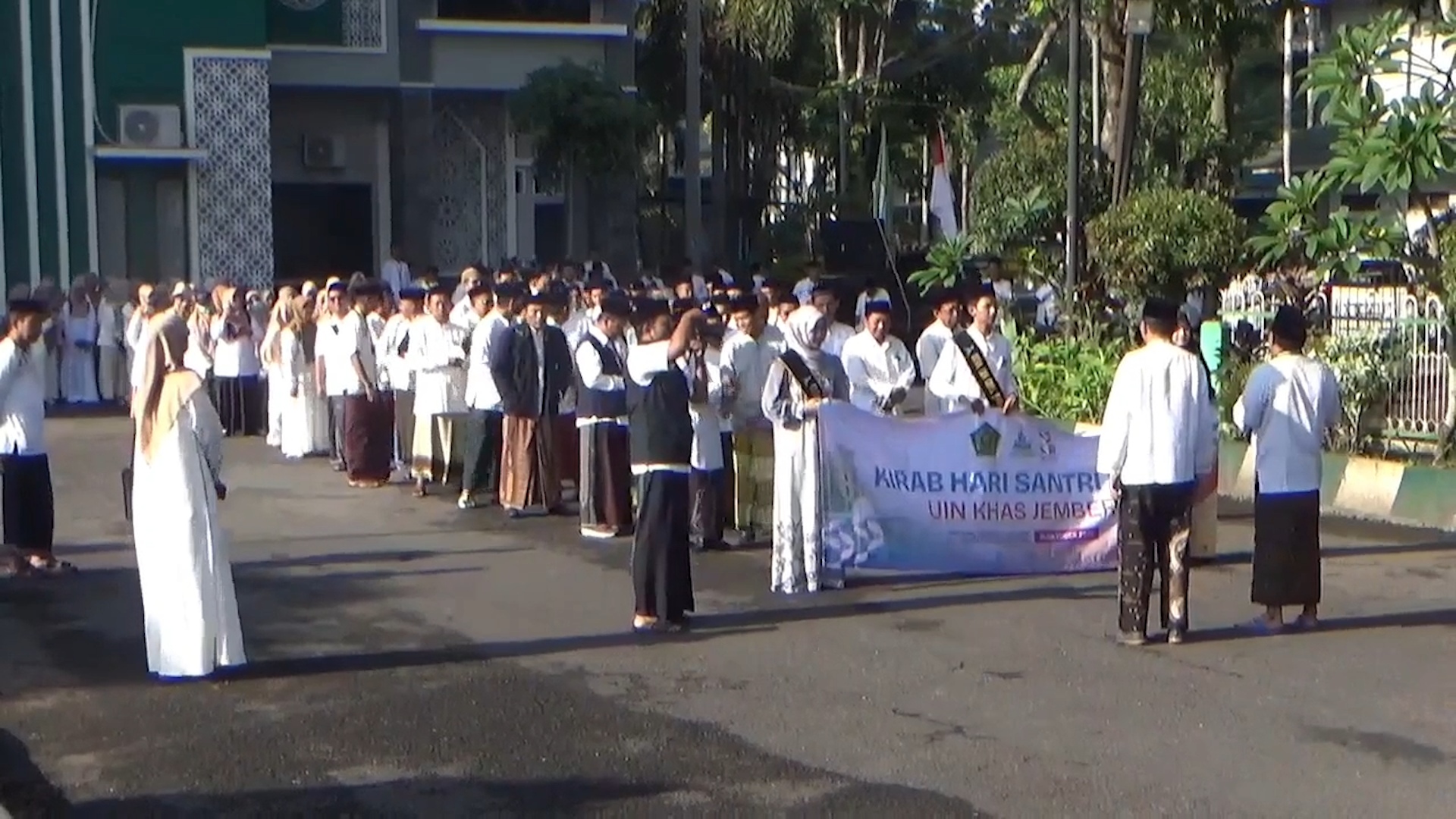 Kemeriahan kirab terlihat sejak pagi di halaman kampus UIN KHAS Jember. Ratusan mahasiswa bersama civitas akademika turut berpartisipasi dalam kegiatan tersebut. Mereka berjalan kaki mengelilingi area sekitar kampus sejauh lebih dari tiga kilometer, mengenakan busana khas santri yang mencerminkan kesederhanaan dan semangat perjuangan.
