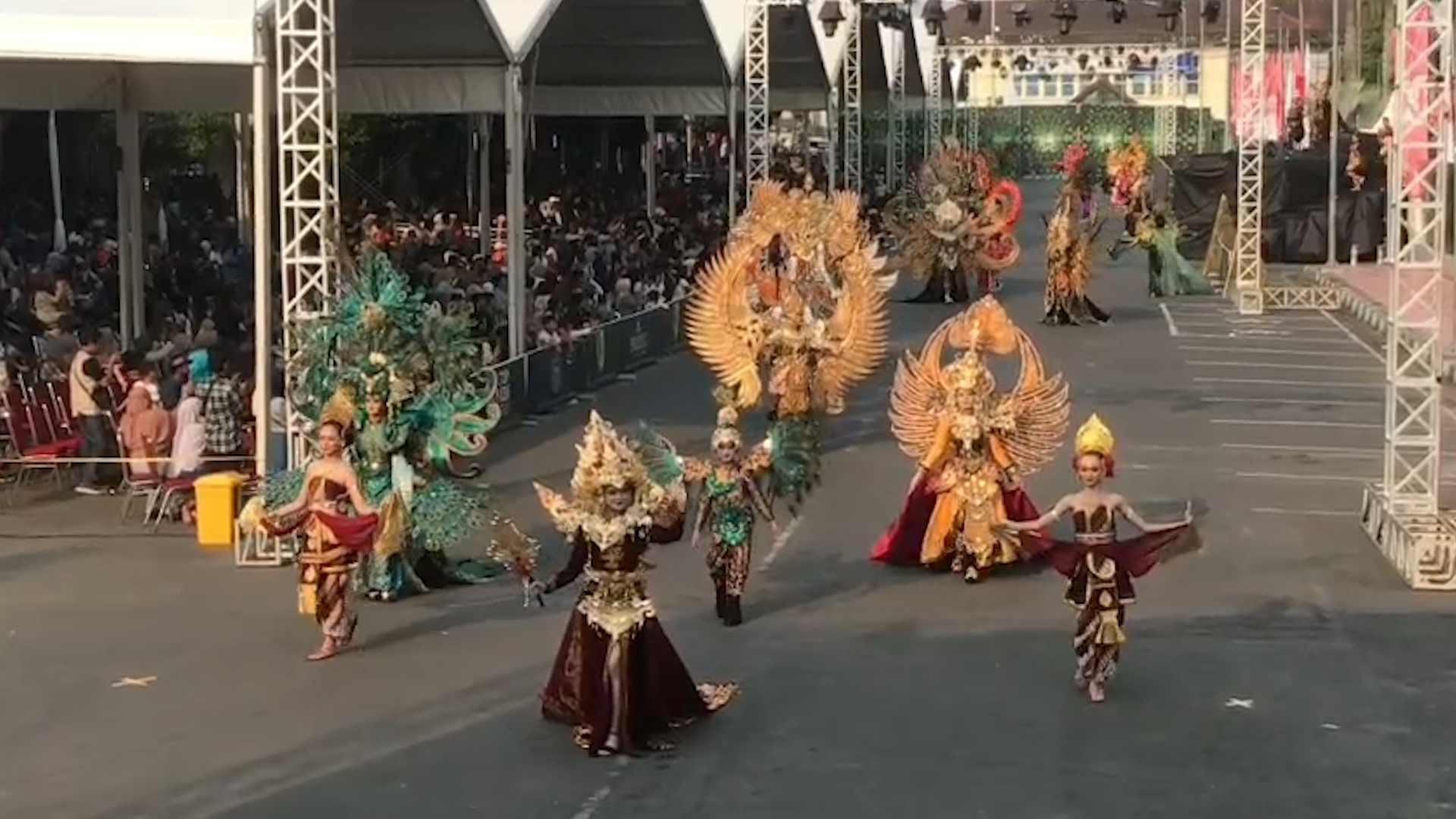 Parade dibuka oleh kontingen Yogyakarta dengan pasukan adatnya, disusul penampilan masyarakat adat Bali yang menampilkan atraksi seni pencak silat dan pecut. Selanjutnya, penonton disuguhkan penampilan dari Suku Sasak Lombok, Lombok Tengah Mandalika, Matraman, Sumenep Madura, Cirebon, Sulawesi Tenggara, dan Wonosobo.